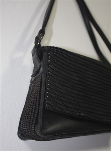 Mala torbica crne boje, sa prednje strane i bočno ukrasni cifovi. Otvaranje/zatvaranje glavnog pretinca na magnetni gumb, dvije male ručkice.
