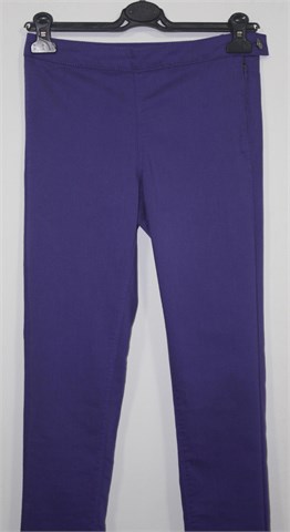 Vila hlače/tajice (jeggings) lijepe nijanse ljubičaste boje (malo tamnija i zagasitija boja nego na slici). Bočni cif i kopčanje, nemaju džepova niti ukrasa. Sa stražnje strane nogavice su prošivene (vidi se na slici). Odličan, čvrst materijal, rastezljiv.