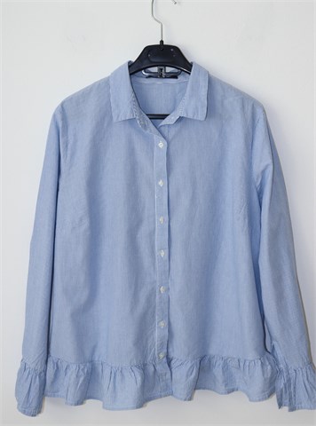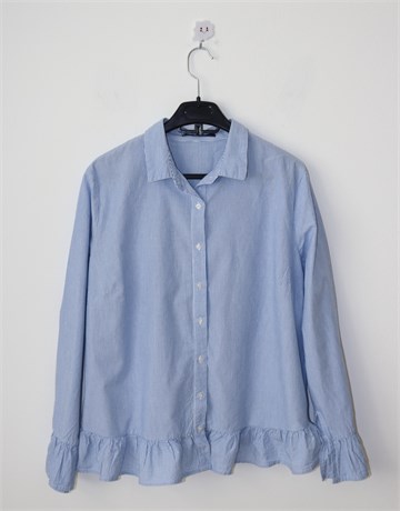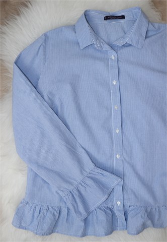 Violeta by Mango košulja sa dugim rukavima, prugasta kombinacija plave i bijele boje. Na dnu košulje i na krajevima rukava volančić (na krajevima rukava i mali rasporci). Kvalitetan pamuk, nije rastezljiv.