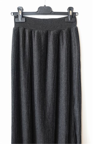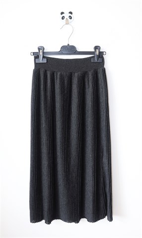Zara Knit (Italian yarn) duža plisirana suknja prošarano tamno sive boje. Gumica u struku (prilagodljiva širina), tanko i rastezljivo pletivo.
