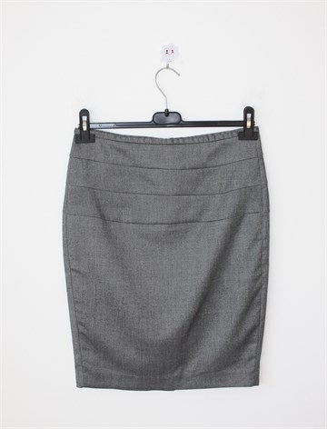 Zara Basic suknja crno-bijele boje (sitan uzorak na materijalu - vidljivo na slikama). Stražnji cif i rasporak, podstavljena. Blago rastezljiva.