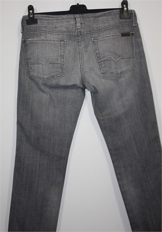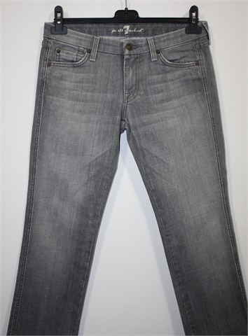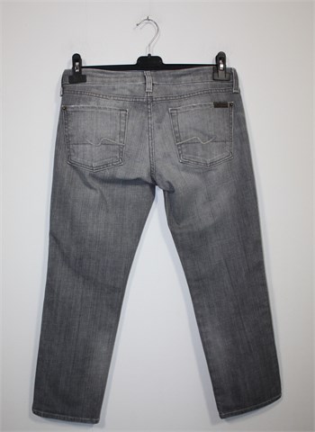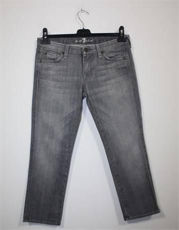 7 for all mankind traper hlače sive boje, mjestimično ispranog i ocufanog izgleda (tvornički used look), nogavice su cca dužine 7/8 (vidjeti mjere). Prednji cif i kopčanje, pasica za remen. Prednji i stražnji klasični džepovi, vrlo blago rastezljive. Oznaka modela - Crop Carol.