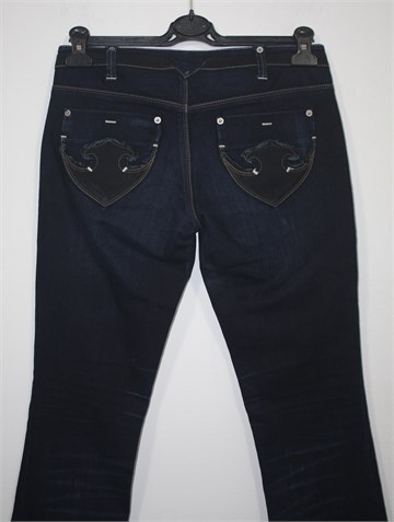 Armani Exchange traper hlače, tamniji traper mjestimično ispranog i iscufanog izgleda (used look). Prednji cif i kopčanje, niska pasica za remen. Prednji i stražnji džepovi (stražnji ukrašeni prošivima). Ravne i uske nogavice, blago rastezljive.