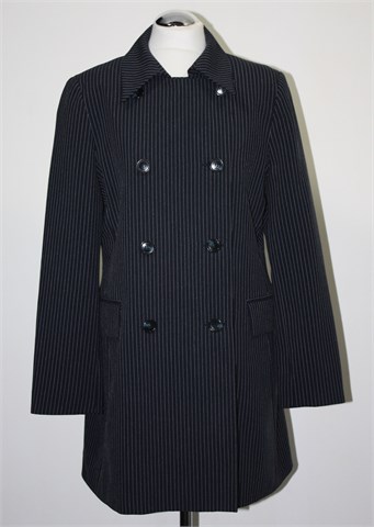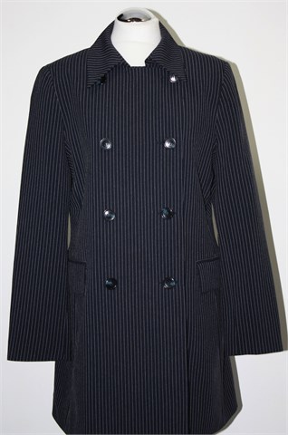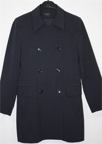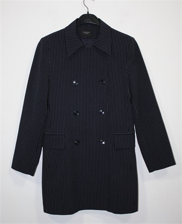 Adessa Woman tanji kaput (krojen kao dugački sako) tamno plave boje sa bijelim prugama. Prednje kopčanje, bočni džepovi (još uvijek zašiveni). Jastučići u ramenima, podstavljen.