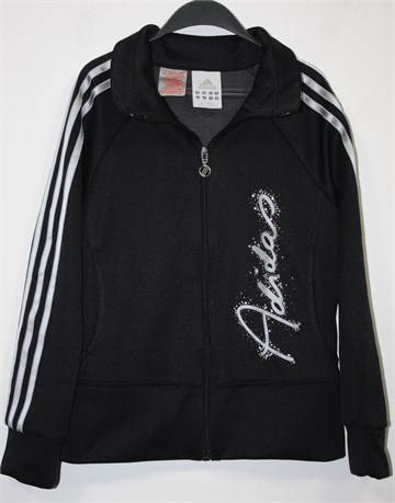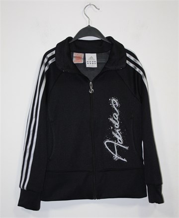 Adidas jaknica/majica sa cifom crne boje, na rukavima sivo-srebrne pruge. Prednji bočni džepovi, sivo-srebrni natpis i aplikacije sa prednje strane. Blago rastezljiva.