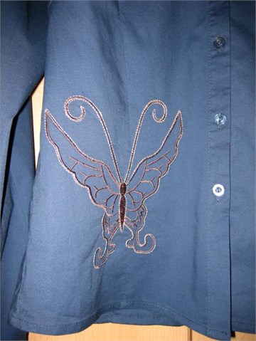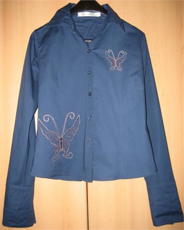 Klasično kopčanje. Našivene aplikacije leptira sa prednje strane. Strukirana.