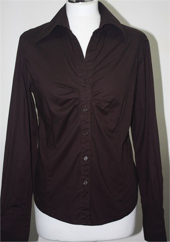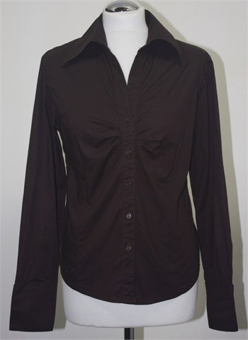 Amadeus košulja sa dugim rukavima, smeđe boje. Prednje kopčanje, strukirana. Čvrst i rastezljiv pamuk.