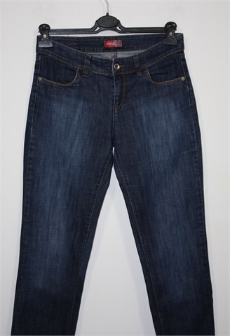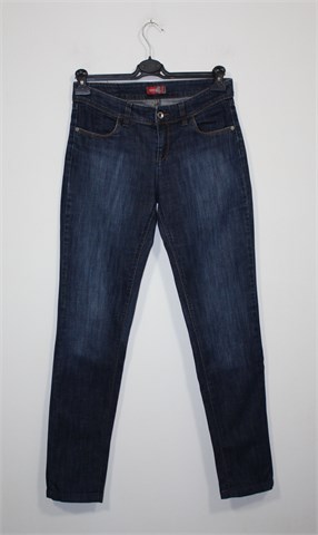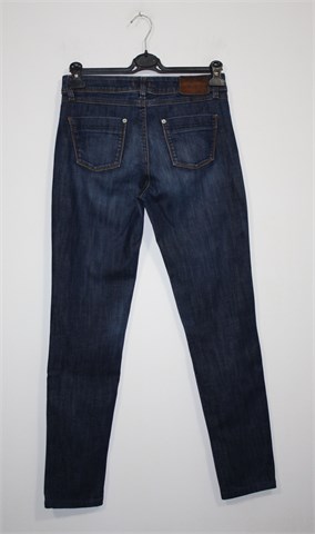 Amadeus traper hlače tamnije plave boje, mjestimično ispranog izgleda (used look). Prednji cif i kopčanje, pasica za remen. Prednji i stražnji klasični džepovi. Ravne i uže nogavice, rastezljivi traper.