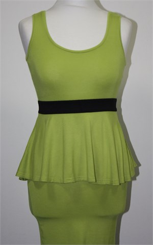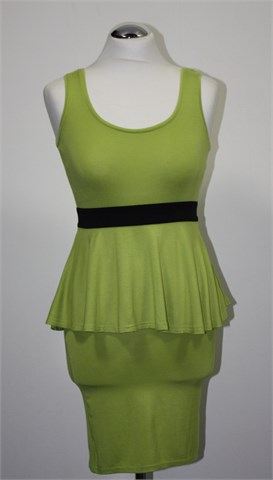 Amisu haljina bez rukava, svijetlo zelene boje. U struku rastezljiva gumica crne boje, ispod nje volančić (jednaka sa obje strane). Lagana i vrlo rastezljiva, mekana.