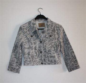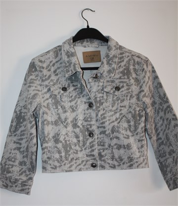 Amisu kratka jaknica od trapera/kepera, svijetlo sive boje sa tamnije sivim printom. Prednje kopčanje, džepići na prsima. Poludugi rukavi, malo rastezljiva.
