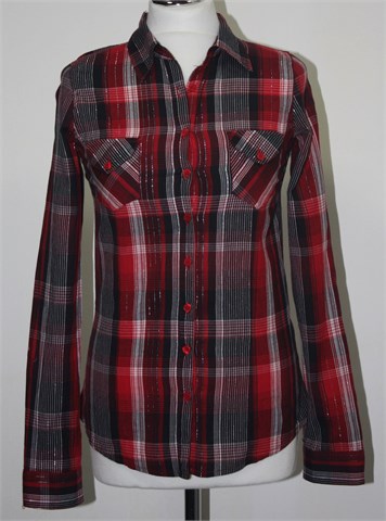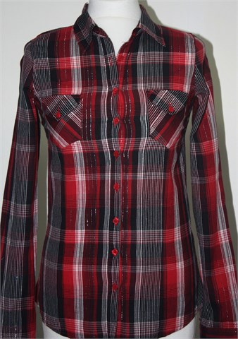 Amisu košulja sa dugim rukavima, kombinacija crne, crvene i bijele boje s uzorkom (mjestimično protkana srebrnim nitima). Prednje kopčanje, džepići na prsima. Mekana i lagana, nije rastezljiva.