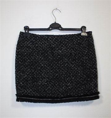 Amisu zimska suknjica prošarano sivo-crne boje. Na dnu suknje je resasta traka na koju je našiven tanki srebrni lanac.