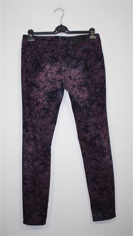 Amisu traper hlače sa prošaranim uzorkom (boje i uzroak kao na slici), skinny model. Prednji cif i kopčanje, pasica za remen. Prednji i stražnji klasični džepovi. Blago rastezljive.