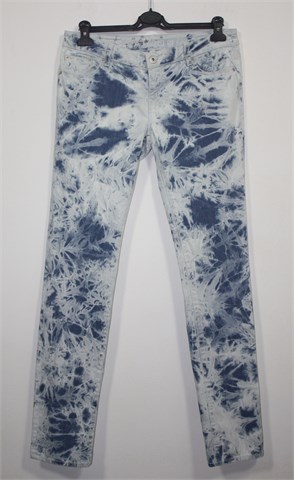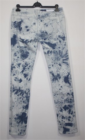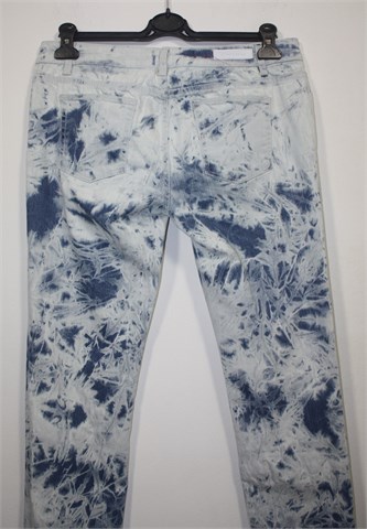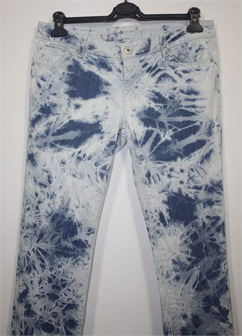 Amisu traper hlače, prošarano-izbljeđena kombinacija skroz svijetlog i trapera srednje plave boje. Prednji cif i kopčanje, pasica za remen. Prednji i stražnji klasični džepovi. Blago rastezljive.
