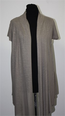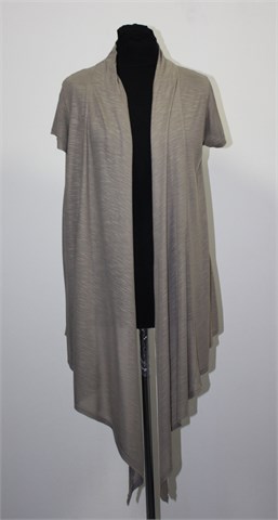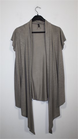 Amisu asimetrični kardigan/vesta sa kratkim rukavima, boja je svijetlo smeđe-siva. Lagan i rastezljiv materijal, tanji. Nema kopčanja, nosi se raspušten (kao na slici) ili se rubovi mogu zavezati.