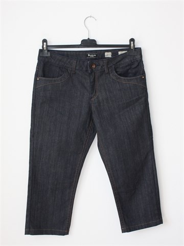 Anastacia by S. Oliver poluduge traper hlače (skraćene), tamno plave boje. Prednji cif i kopčanje, pasica za remen. Prednji i stražnji džepovi. Blago rastezljive. Model - Hipster.