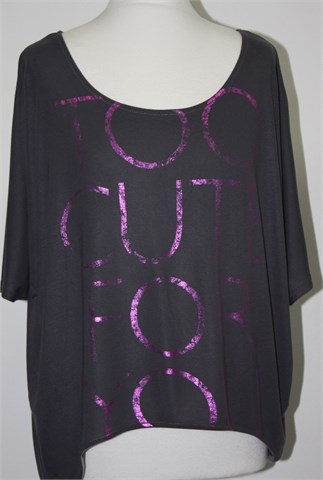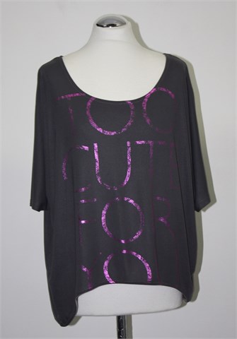 Ann Christine oversized majica sive boje sa prednjim rozim printom (too cute for you). Mekana i blago rastezljiva, nešto je kraća sa prednje strane (vidjeti mjere).