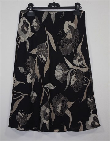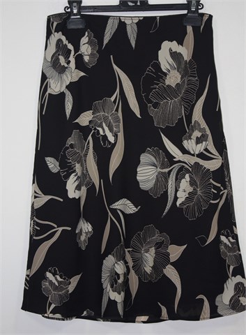 Ann Taylor LOFT suknja crne boje sa svijetlim cvjetnim printom (boje i uzorak kao na slikama). Bočni cif i kopčice, podstavljena. Lagana i prozračna, rastezljiva.