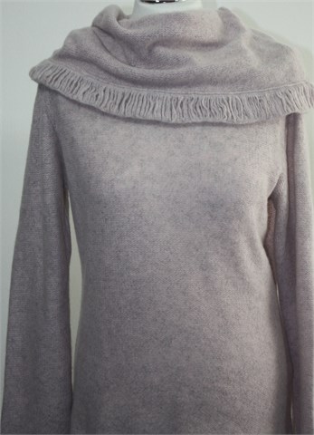 Arena vesta/dolčevita prošarano svijetlo rozo-sive boje. Mekano, mucasto i rastezljivo pletivo.