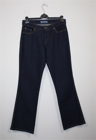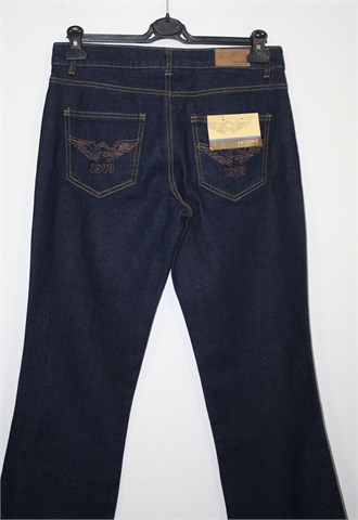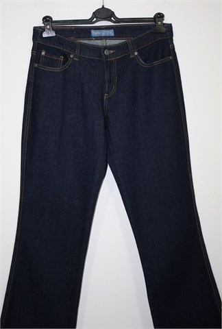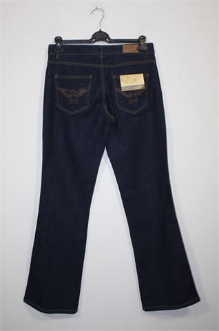 Arizona Jeans traper hlače tamno plave boje. Prednji cif i kopčanje, pasica za remen. Prednji i stražnji džepovi (stražnji ukrašeni aplikacijama od konca). Rastezljive.