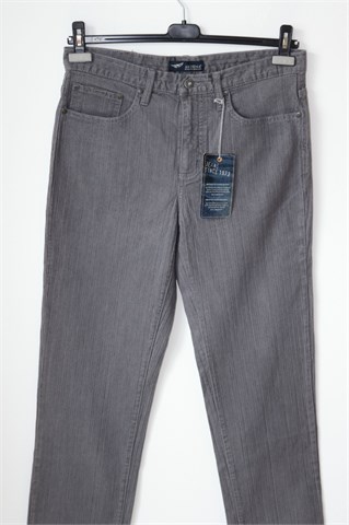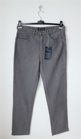 Arizona Jeans traper hlače sive boje, reljefno- prugasti uzorak na traperu. Prednji cif i kopčanje, pasica za remen. Prednji i stražnji džepovi. Rastezljive.
