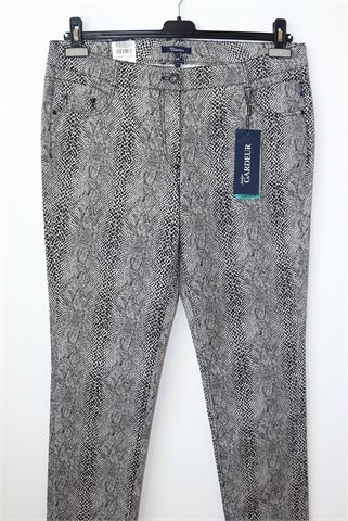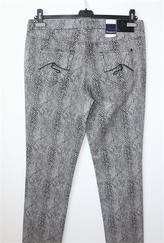 Atelier Gardeur hlače crno-bijele boje sa zmijskim printom. Prednji cif i kopčanje, pasica za remen. Prednji i stražnji klasični džepovi. Rastezljive. Oznaka modela - super slim fit, regular dužina nogavica.