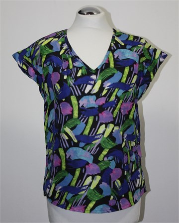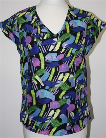 Atmosphere bluza sa kratkim rukavima, crne boje sa šarenim printom. Lagan i nerastezljiv materijal.