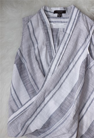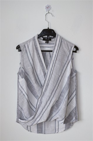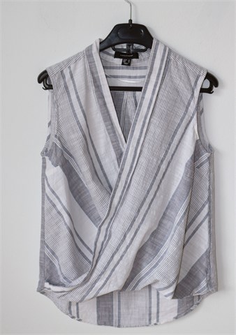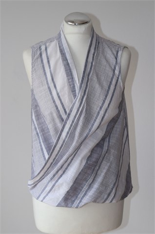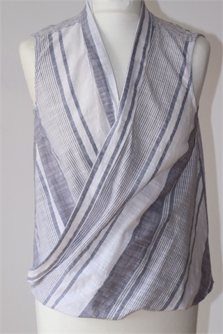 Atmosphere prugasta bluza bez rukava, sa prednje strane fiksni preklop. Duža sa stražnje strane (vidjeti mjere), tanja i lagana.