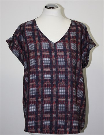 Atmosphere bluza sa kratkim rukavima, tamno plave boje s uzorkom (kao na slici). Lagan i nerastezljiv materijal.