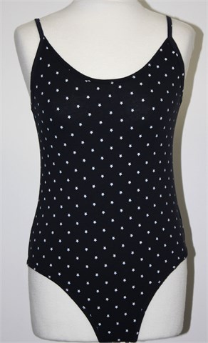 Atmosphere body sa tankim naramenicama, crne boje sa bijelim printom zvijezdica. Kopčanje sa tri drukera između nogu. Mekan i vrlo rastezljiv pamuk.