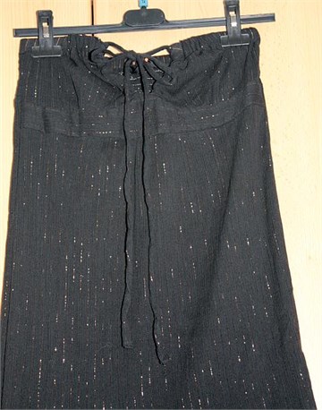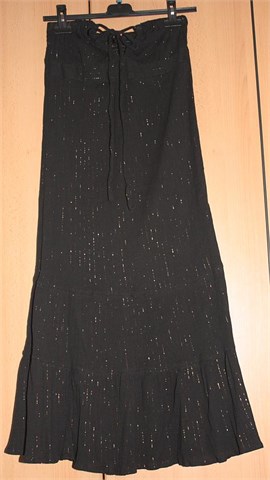 Prekrasna ljetna haljina crneboje, cijelom haljinom ušivene zlatne niti. Bez naramenica, "rezana ispod grudi". Iznad prsa je guma i trakice za zatezanje.