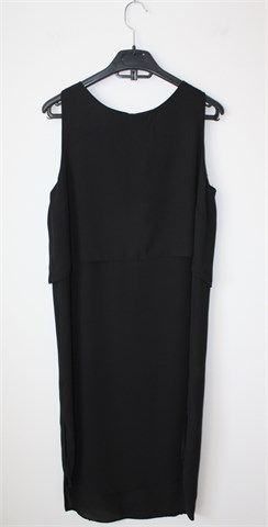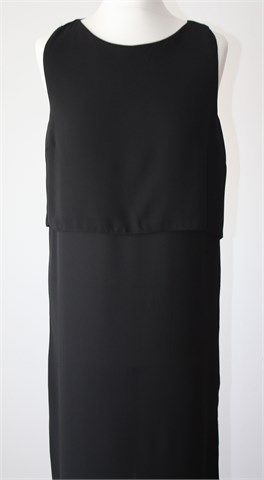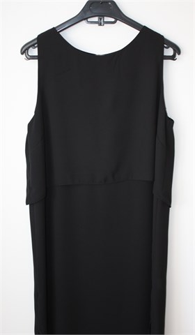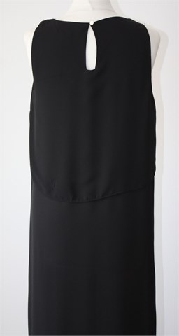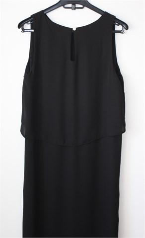 Atmosphere haljina bez rukava, crne boje. U gornjem dijelu haljina ima još jedan sloj (vidljivo na slikama), sa stražnje strane gumbić. Bočni veći prorezi, haljina je nešto duža sa stražnje strane (vidjeti mjere). Tanja i lagana (moguće blago providna), nije rastezljiva.