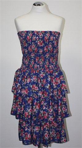 Atmosphere haljina/tunika plave boje sa šarenim cvjetnim printom (boje i uzorak printa vidljivi na slikama). Gornji dio prošiven sa rastezljivim gumicama pa je širina prilagodljiva (vidjeti mjere), donji dio volani u tri reda. Mekan i tanji materijal.