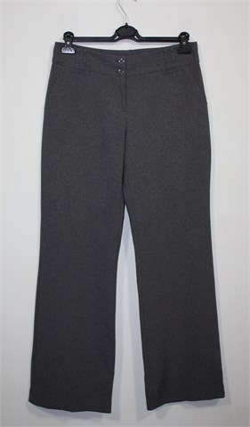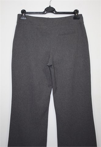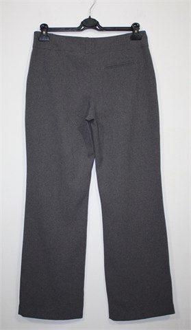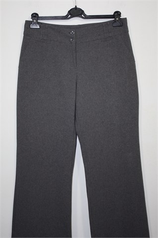 Atmosphere hlače klasičnog kroja, prošarano sive boje. Prednji cif i kopčanje, pasica za remen (ukrasni preštepi od sivog konca na pasici). Prednji bočni i jedan stražnji ukrasni džepić. Tanji i lagan materijal.