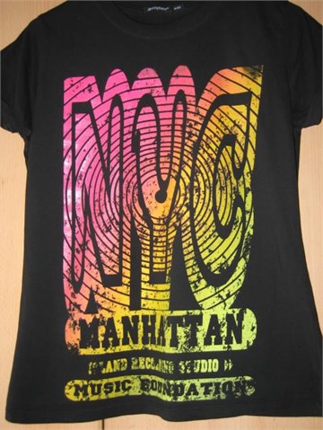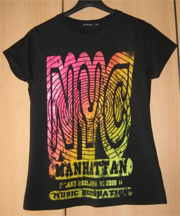 Majica crne boje, kratki rukavi, print sa prednje strane. Podvrnuti rukavići. Blago rastezljiva.