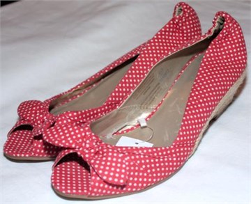 Umjetni materijal zlatne boje iznutra, izvana presvućene tkaninom crvene boje sa bijelim točkicama.