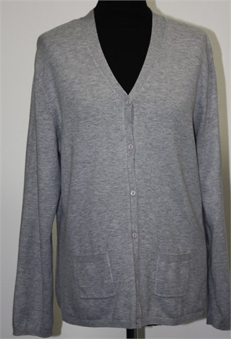 Authentic (Clothing Company) vesta na kopčanje/kardigan prošarano sive boje. Prednje kopčanje, mali bočni džepići (još uvijek zašiveni). Mekno, tanje i rastezljivo pletivo.