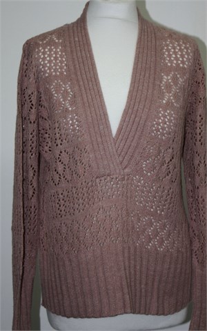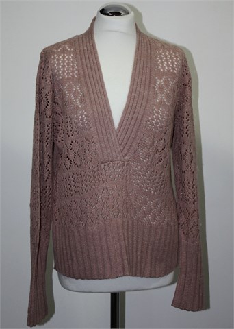 Axcess (by Liz Claiborne) končana vesta prošarano prljavo rozo-bijele boje. Prednji V otvor, rupičasta sa prednje strane i na rukavima. Rastezljivo pletivo.