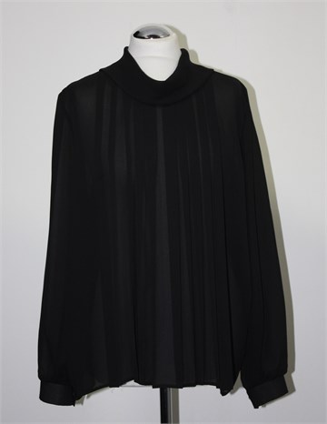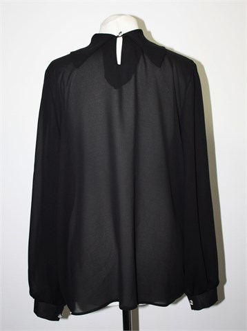 B&A Collection bluza sa dugim rukavima, crne boje. Plisirana sa prednje strane, ukrasni prozirni gumbi na kraju svakog rukava i sa stražnje strane (na vratu) - jedan se odšio ali dolazi uz košulju. Tanji, lagan i proziran materijal. Širi model (vidjeti mjere).