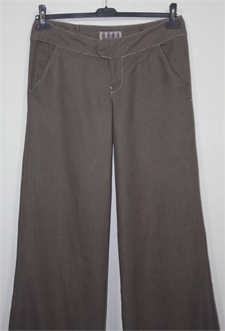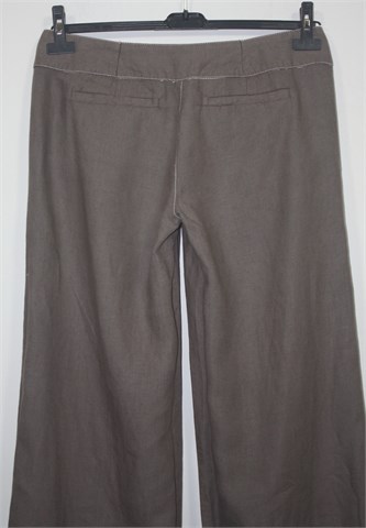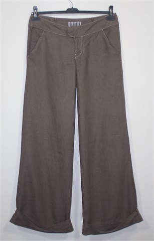 BB Dakota lanene hlače smeđe boje. Prednji cif i kopčanje, pasica za remen. Prednji bočni, stražnji ukrasni džepovi. Lagane i prozračne, ušitci na pasici - malo su sužavane u struku.