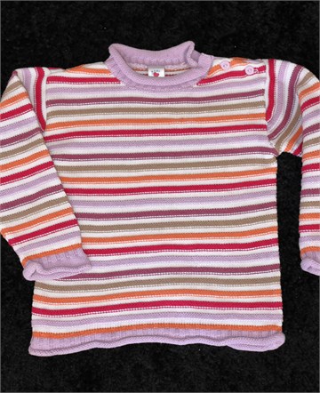 Baby Club (C&A) vesta od debljeg končanog pletiva. Gumbići na ramenu, prugasti uzorak (boje vidljive na slikama). Rastezljivo pletivo.