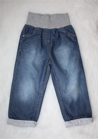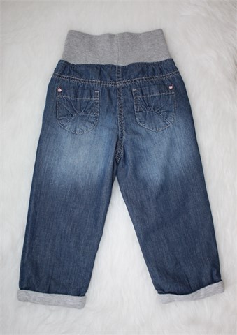 Baby club (C&A) podstavljene traper hlače (postava i pasica sive boje). Mekani traper, rastezljiv struk (vidjeti mjere).