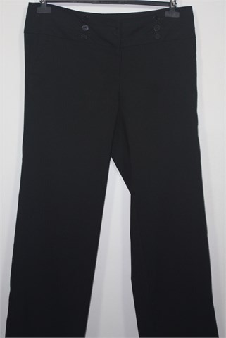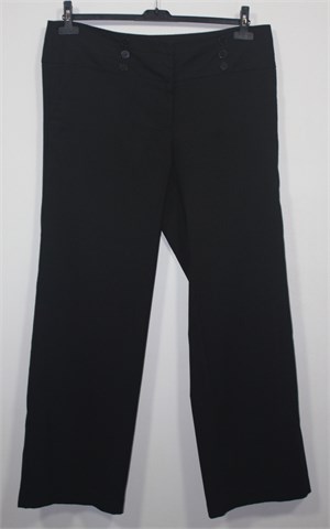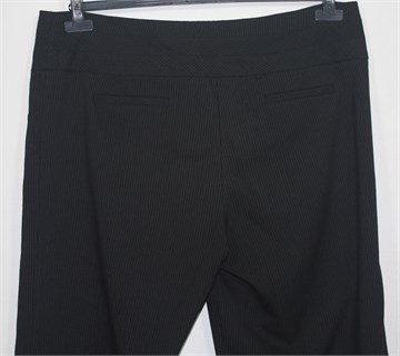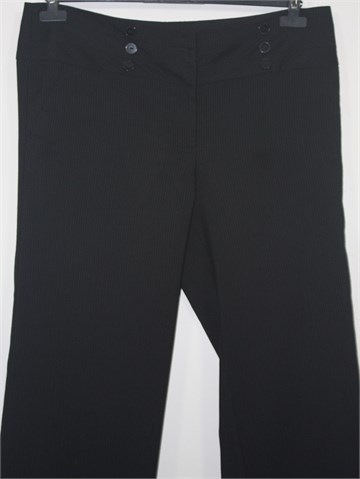Barkins hlače crne boje sa prugama, klasičnog kroja. Prednji cif i kopčice, prednji ukrasni, stražnji skriveni džepovi.