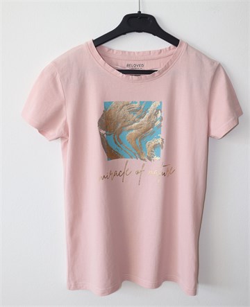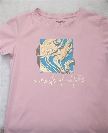 Beloved majica sa kratkim rukavima, roze boje. Print sa prednje strane (vidljivo na slikama). Rastezljiva.