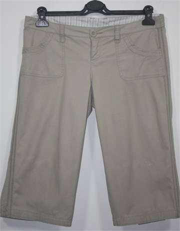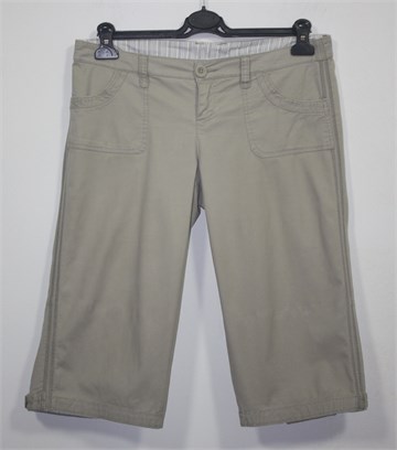 Benetton poluduge hlače/bemude svijetlo bež boje. Prednji cif i kopčanje, pasica za remen. Prednji i stražnji džepovi, blago rastezljive.