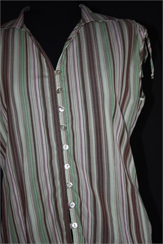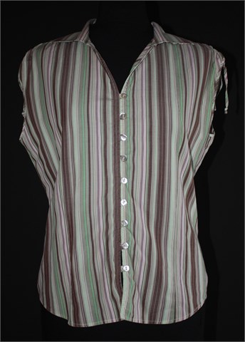 Benetton prugasta košulja bez rukava, sa vezicama na ramenima. Prednje klasično kopčanje, prednji i stražnji ušitci (blago strukirana).