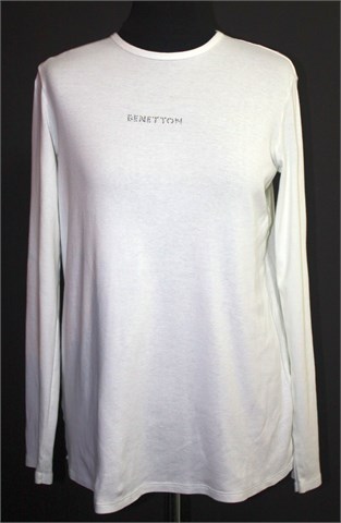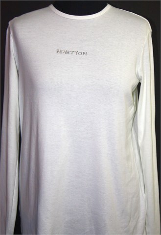Benetton majica sa dugim rukavima, bijele boje sa prednjim natpisom od cirkona. Mekan i rastezljiv pamuk.