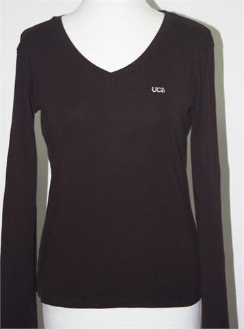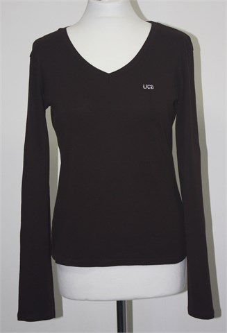Benetton majica sa dugim rukavima, tamno smeđe boje. Sa prednje strane UCB aplikacija od cirkona. Rastezljiva.