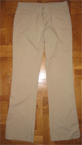 Sastav: 100% pamuk Ravne nogavice. Prednji i stražnji džepovi. Pasica za remen. Lagani pamuk. Mali prorezi sa vanjske strane nogavica. Na hlačama piše veličina 42.