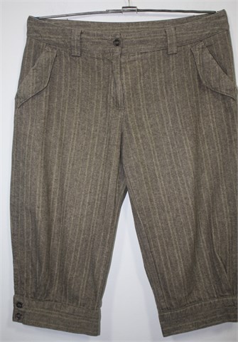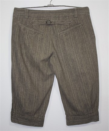 Benetton poluduge hlače, smeđe-bež boje sa uzorkom. Prednji cif i kopčanje, pasica za remen. Prednji bočni, stražnji skriveni džepovi. Deblji i mekan pamuk.